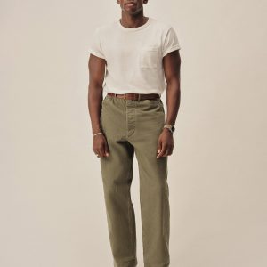 Classic fit short sleeve sweater tee with a straight hem. Yarn-dyed 16 gauge cotton jersey features light slub texture. Features double layer 1×1 ribbing at the collar and rib finishing at the cuffs and hem. Constructed with hand-linked seams for improved durability.