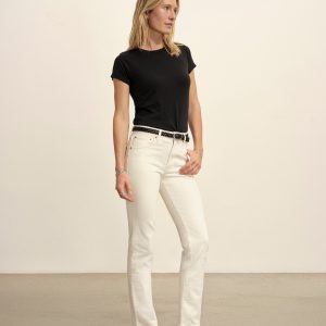 Designed for everyday wear or more polished styling, these mid-rise, slim-leg, ankle-length jeans are the definition of versatility. They’re cut from midweight 12 oz denim—with a hint of stretch for all-day comfort—and are finished with classic details like copper rivets, a metal tack button, and a zipper fly. Garment washed and dyed for a lived-in feel.