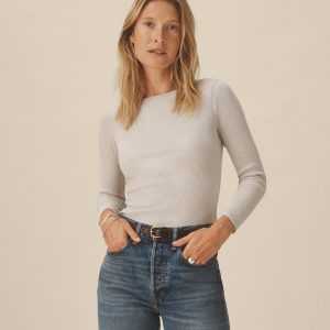 Slim fit crewneck sweater in a 24″” length, elevated in a 14 gauge variegated rib knit from a blend of merino wool, silk, and cashmere. Luxe, easy, and ideal for layering. Constructed with self-starting hem and sleeve trim and fashioning at the neckline and back shoulder for durability.