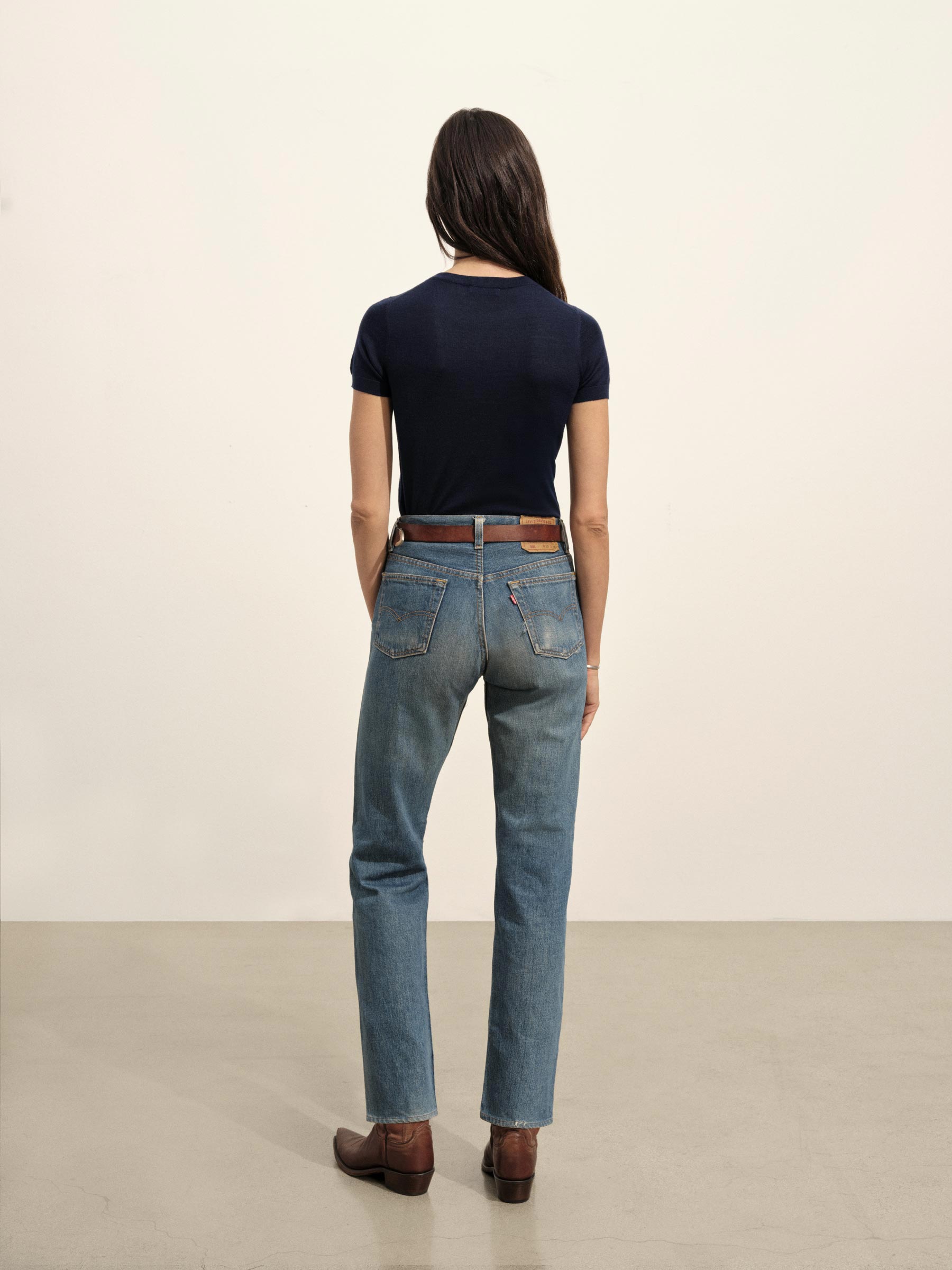 Crewneck sweater knit tee with a relaxed, slim fit. Spun from a yarn-dyed blend of merino wool, silk, and cashmere. Garment washed for added softness.