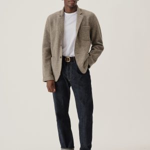 Classic fit chore coat with a slimmer cut through the arms and room in the torso for layering. This 340 GSM felted merino wool has been twice boiled for improved insulation and durability. Details include three patch pockets, real horn buttons, and a notch collar. Constructed with hand-sewn facings and cover-stitching throughout.