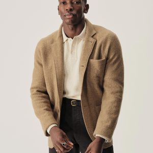 Classic fit chore coat with a slimmer cut through the arms and room in the torso for layering. This 340 GSM felted merino wool has been twice boiled for improved insulation and durability. Details include three patch pockets, real horn buttons, and a notch collar. Constructed with hand-sewn facings and cover-stitching throughout.