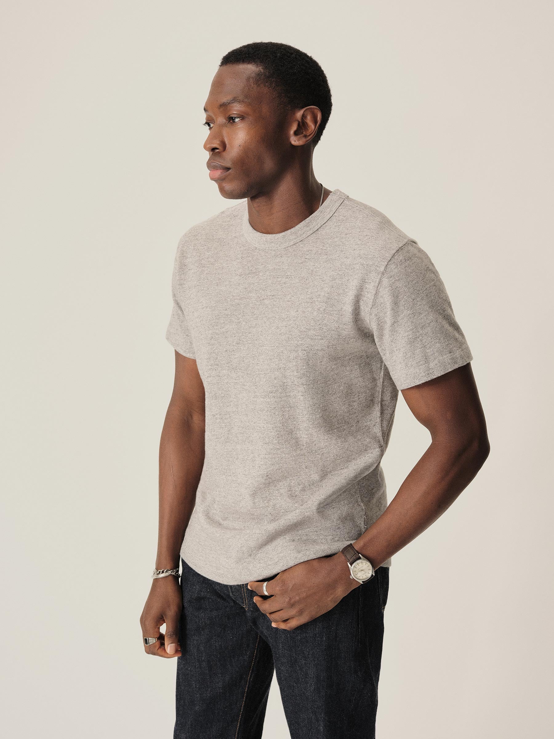 Our full-cut Field Spec Tee, built with hard-wearing, rugby-weight cotton and washed for a soft, lived-in texture.