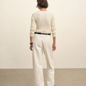 Fluted Rib V-Neck Long Sleeve