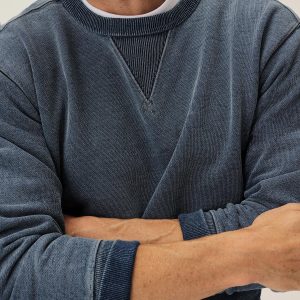 Indigo-Dipped Loopback Double V Crew Sweatshirt