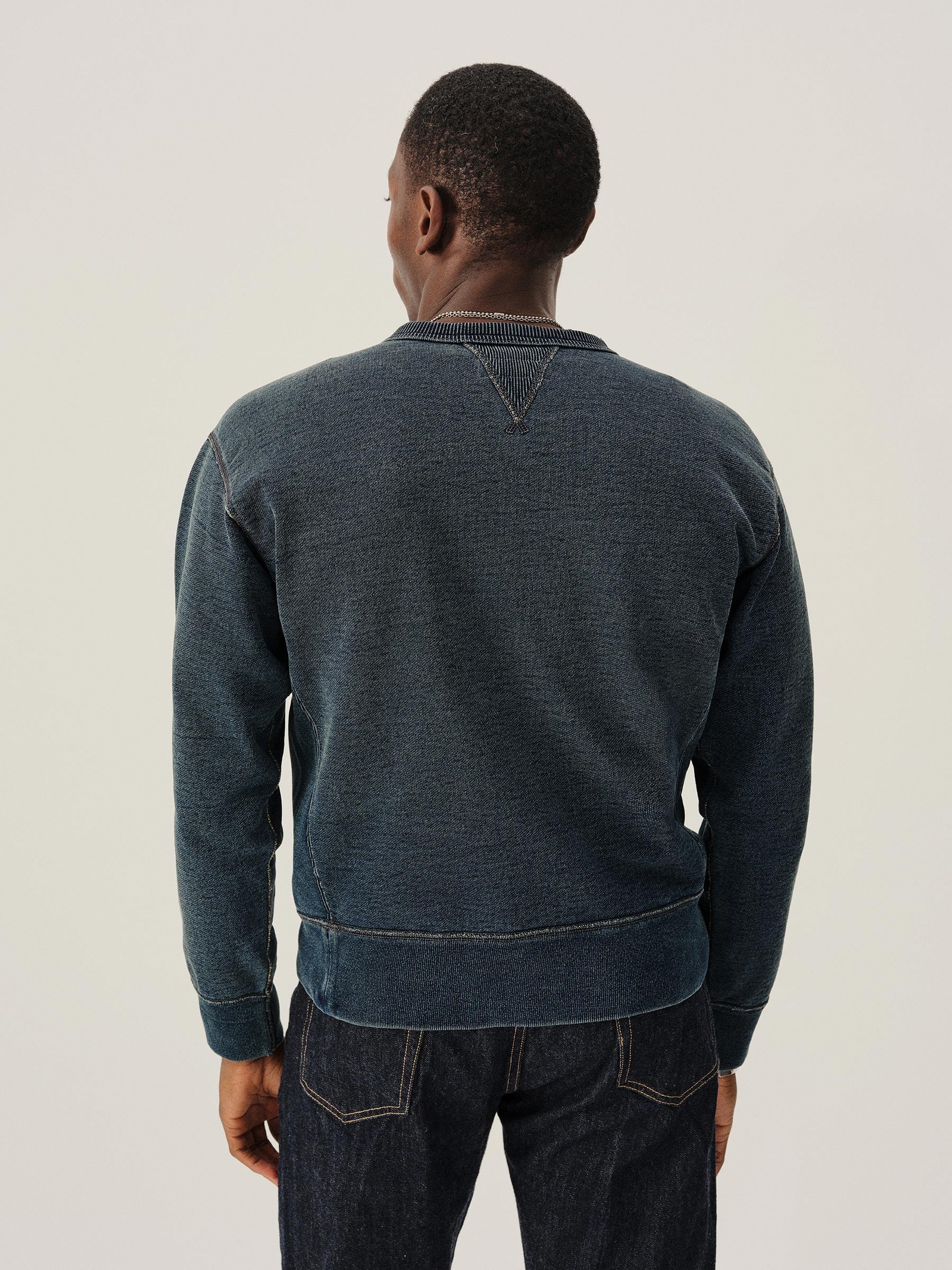 A classic vintage crewneck sweatshirt with the iconic double-V neck gusset opening. Each yarn is dipped dyed in indigo for a deep blue that will fade with wear.