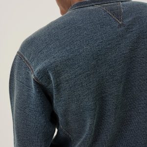 Indigo-Dipped Loopback Double V Crew Sweatshirt