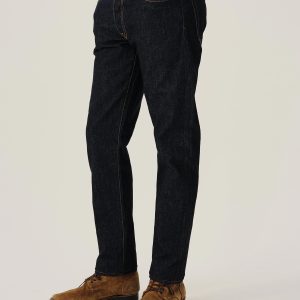 A classic 5-pocket jean in our Maverick Slim fit: Mid-rise with a clean, narrow fit through the thigh and leg. Button fly. Inspired by our favorite vintage jeans, this 14 oz denim from Japan-based Kaihara mills has a hint of stretch and an organic texture that develops more character with every wear. Garment rinsed for a lived-in feel. Details include copper rivets and a metal tack button fly.