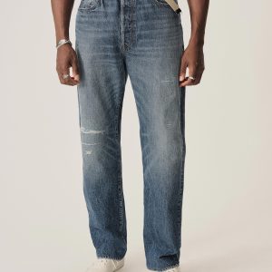 A classic 5-pocket jean in our Full Saddle fit: high-rise, straight through the thigh and leg. Inspired by blue jeans from the 1940s through the 1960s, this shuttle loomed 14 oz. selvedge denim is unsanforized, and has an organic texture that develops more character with every wear. Garment rinsed for a lived-in feel. Details include copper rivets and a metal tack button fly.
