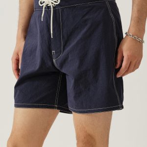 Inspired by the boardshorts of the 1960s, our boardshorts are made from lightweight 100% nylon fabric. They have a front tie closure to help adjust the fit and a single buttoned back pocket. 6-inch inseam.