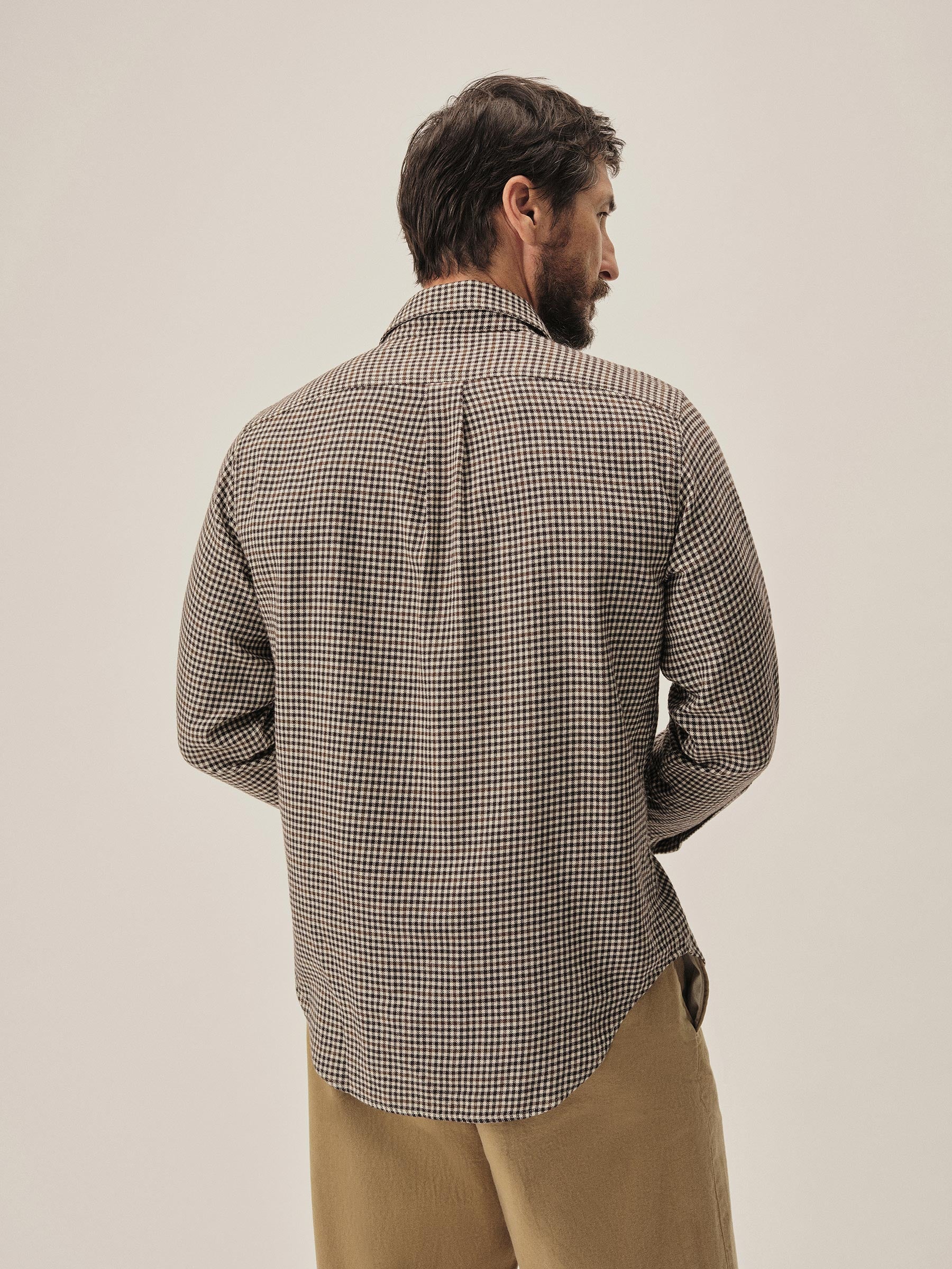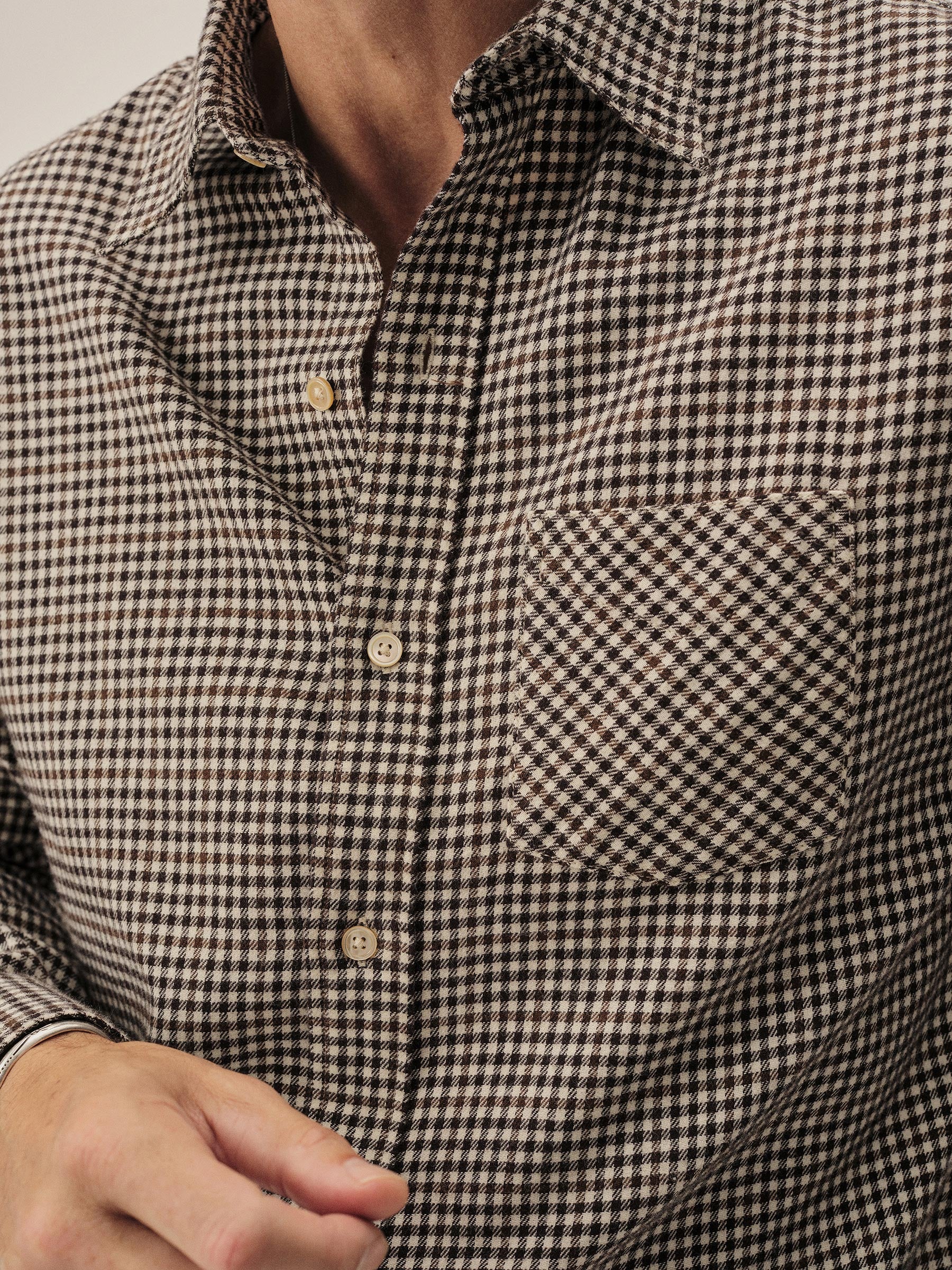 A modern flannel shirt cut from 4 oz. yarn-dyed cotton twill that’s been brushed on both sides for unparalleled softness. Features a single rounded pocket and shell buttons. Garment washed for a lived-in feel. The lightest flannel we make and the softest shirt in your closet.