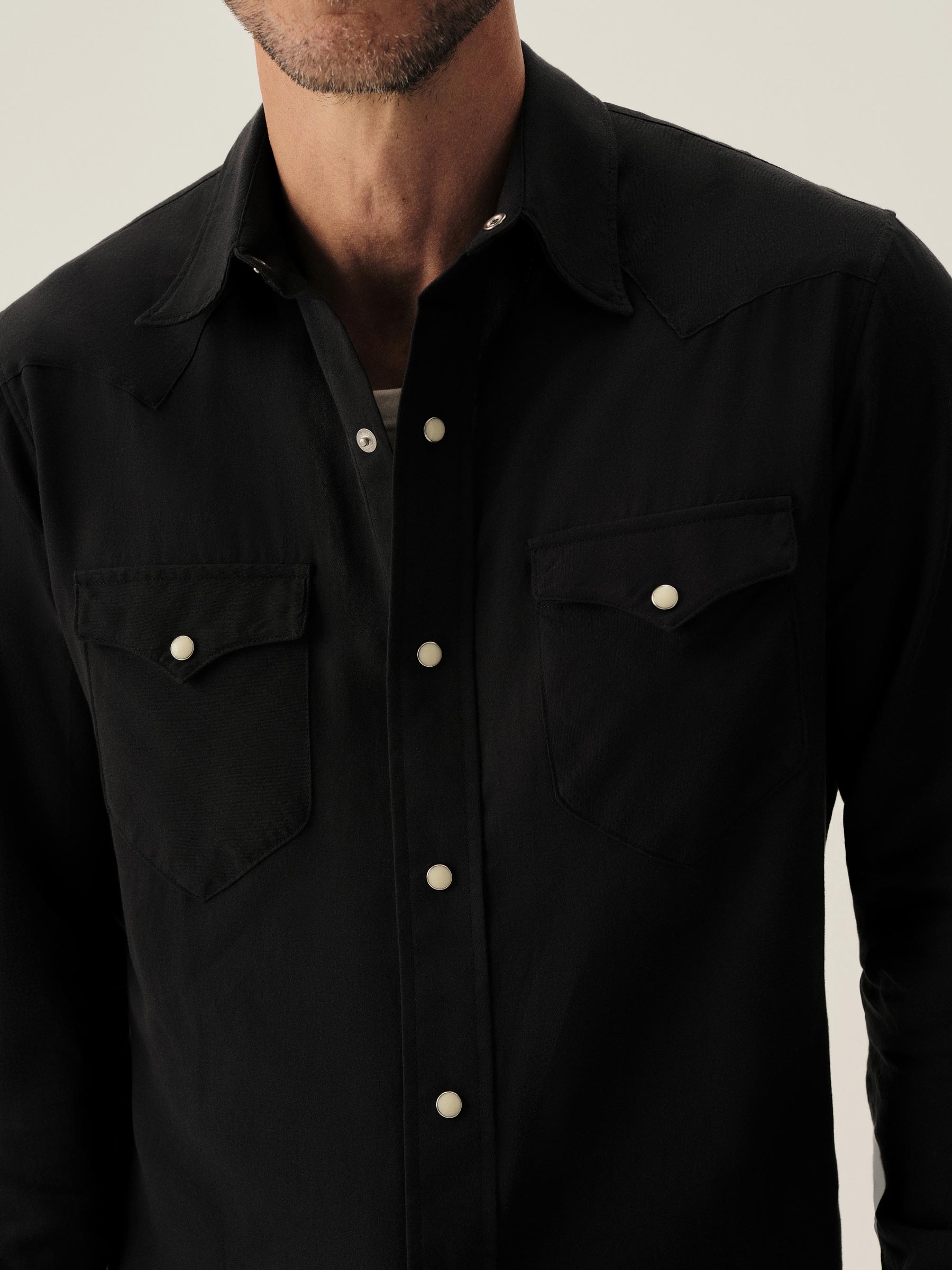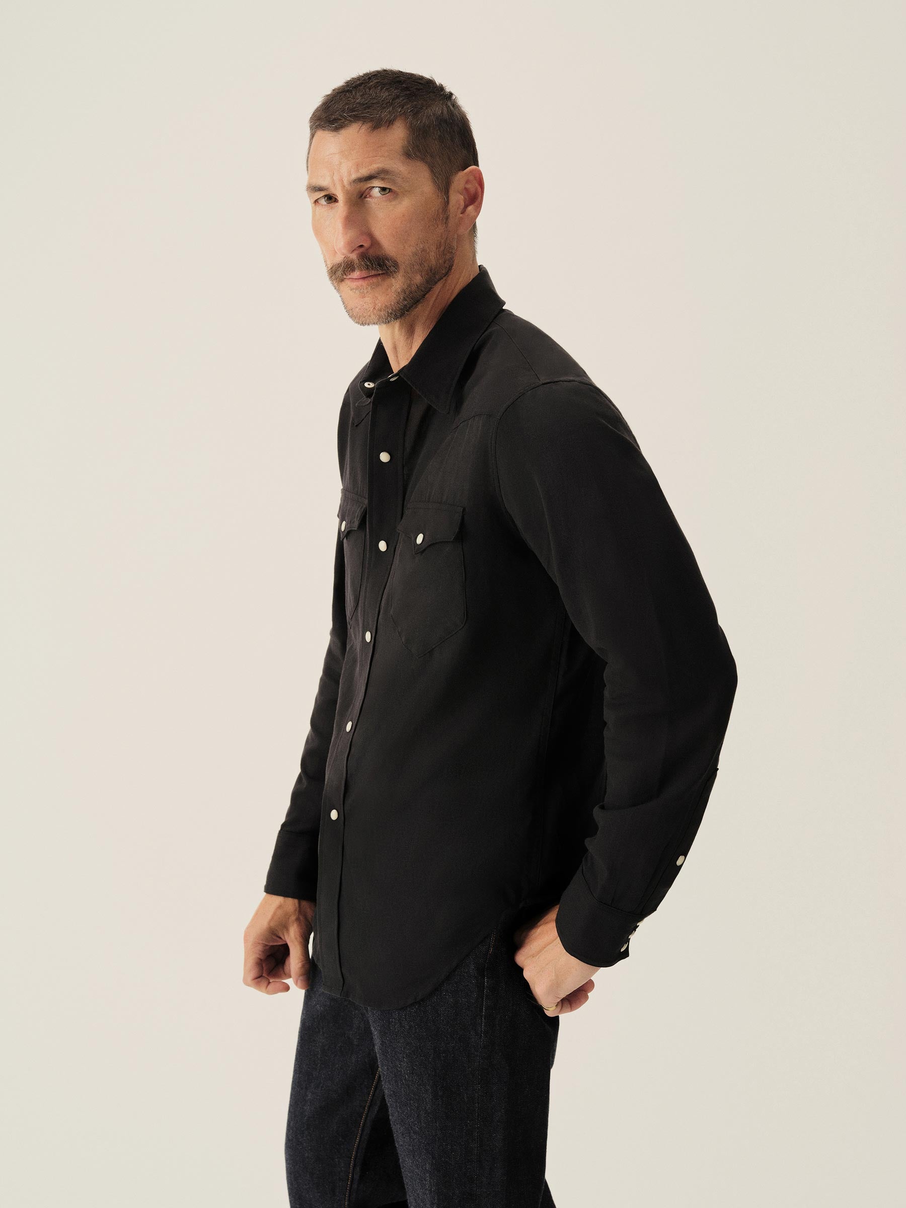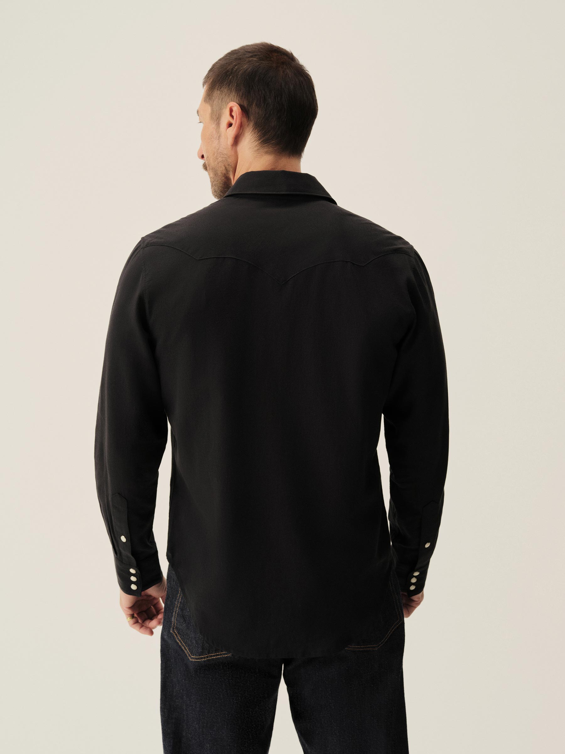 In the spirit of the ol’ Palomino, a classic fit western style shirt made from a springweight blend of cotton and wool, ideal for warm climates. The shirt has all the cowboy details like pearl snaps, a classic pointed yoke, five point pockets with pointed pocket flaps.
