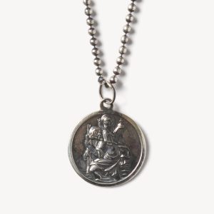 A nod to the road-worn keepsakes of mid-century wanderers, this necklace features a hand-stamped sterling charm suspended on a classic ball chain. Made in Texas. Finished with a Red Rabbit x Buck Mason co-branded stamp.