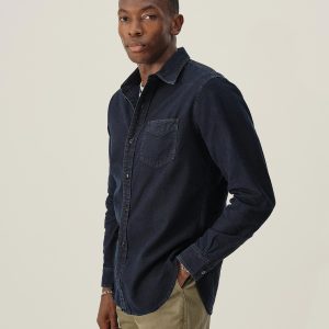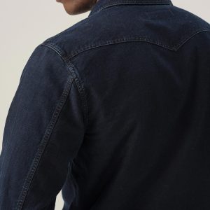 We reimagined a miner’s shirt from the 1930s in lightweight cotton sateen. After washing it for a well-worn feel, we put it through a specialized dye process to throw an accent on the seams while preserving the deep indigo hue. A trim fit and Western yoke complete this vintage-inspired piece.