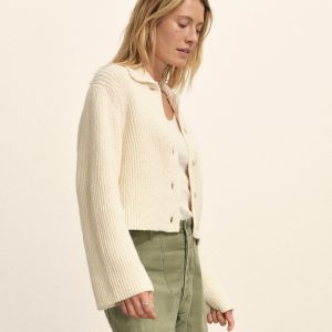 Relaxed, rib-stitched collared cardigan made from a lofty 5 guage cotton. Garment washed for a lived in, vintage feel and completed with corozo buttons and an easy, slightly laid back silhouette.