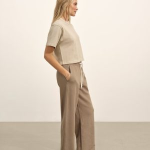 Wide leg, high-waisted sweatpants with a 28” inseam. Can be worn at the natural waist or lower for a more relaxed fit. Cut from 290 GSM cotton French terry with a semi-brushed back. Features a wide, ribbed waistband with drawcord for fit adjustments. Constructed with straddle stitching at seams for durability. Garment dyed and washed for a lived-in feel. Pair with our Vintage Overloop Crew.