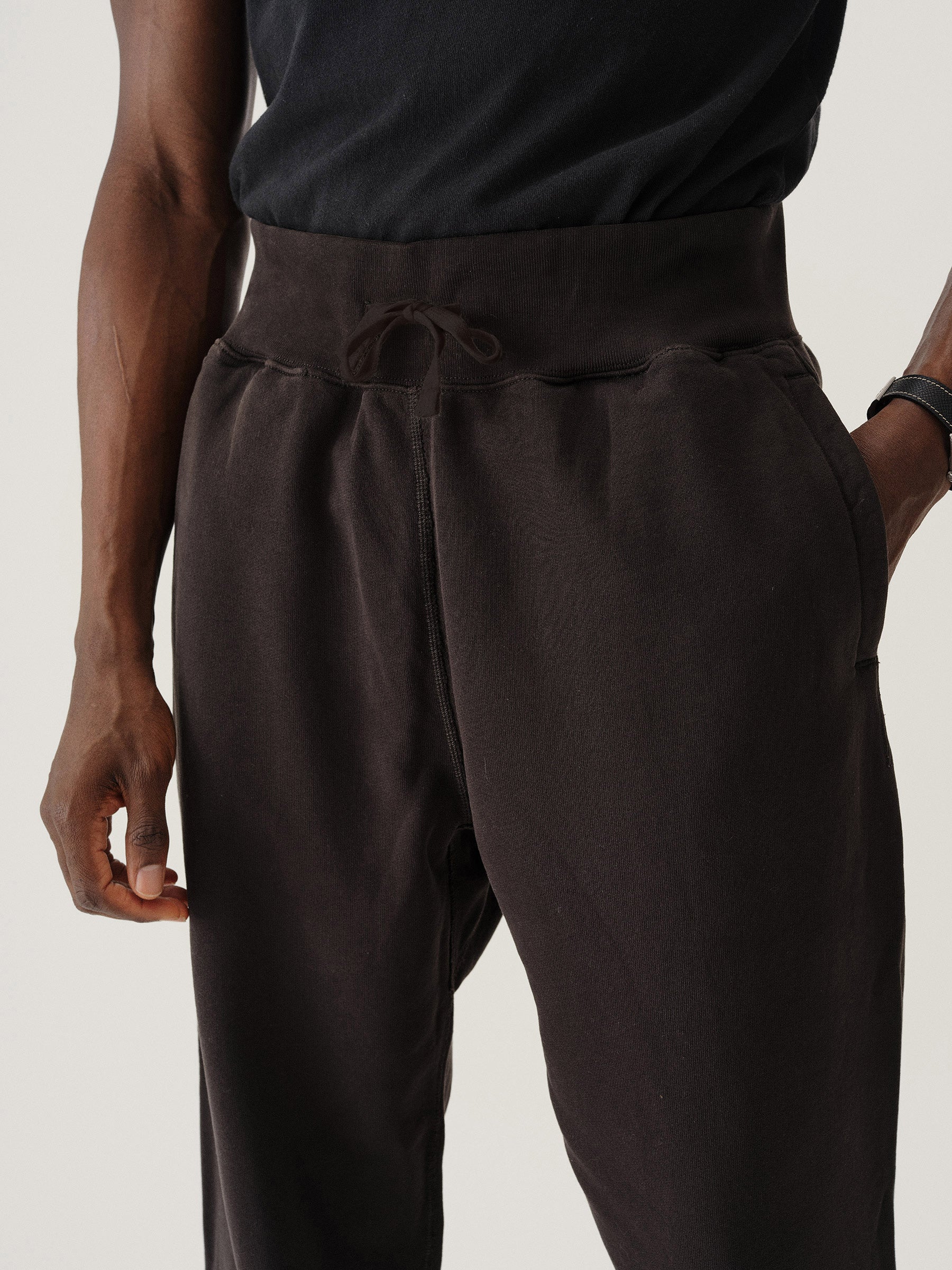A 1940s-inspired sweatpant made from plush, not-too-heavy, not-too-light, welterweight French terry. Features a wide rib waistband and drawcord waist closure.