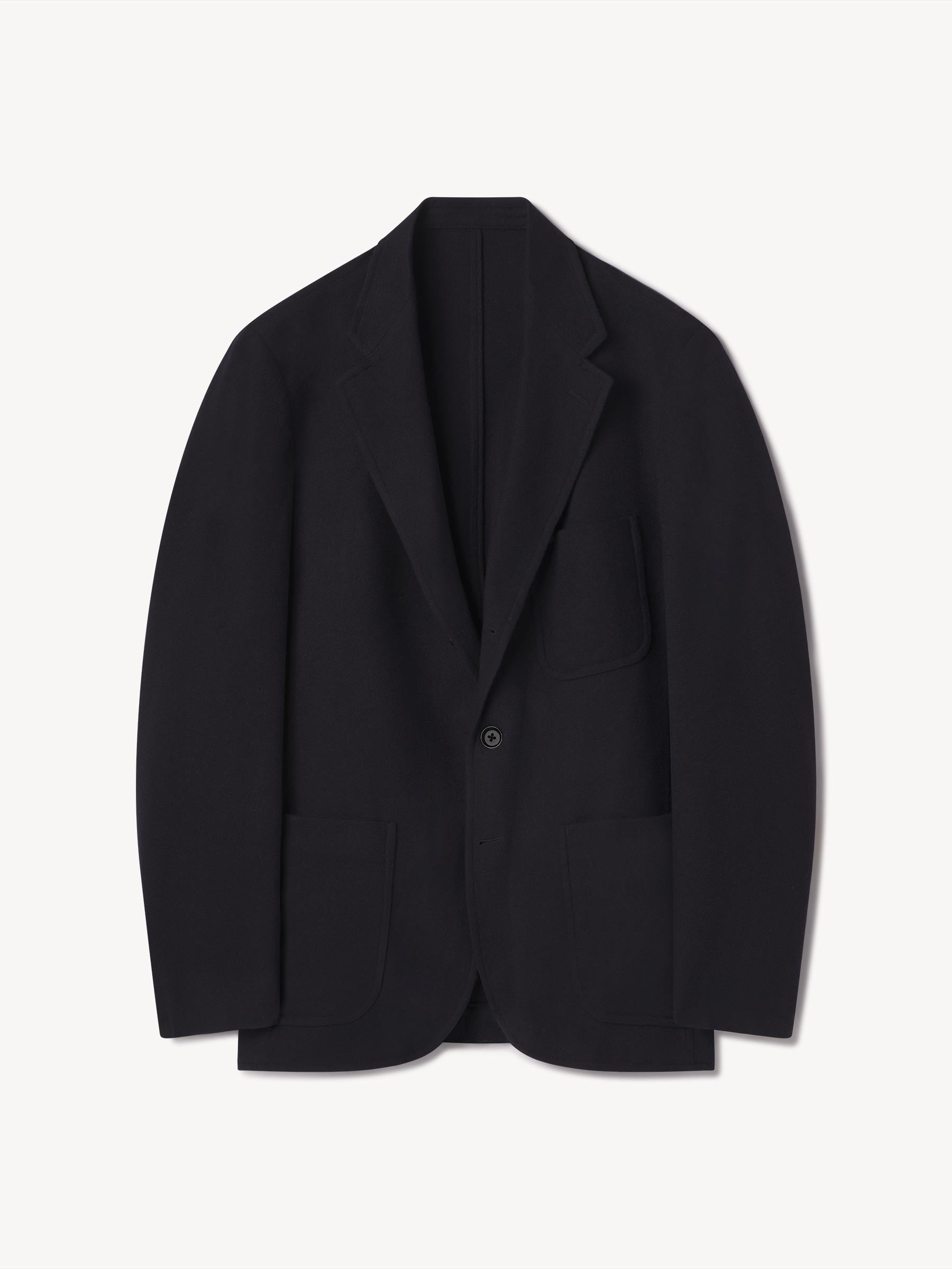 An Ivy-inspired American blazer crafted from a blend of wool and cashmere. Designed with a 3-roll-2 button stance, open patch pockets, and a functional sleeve vent with two horn buttons. Cut with a center back seam and left unlined through the body for a relaxed, unstructured feel, while the sleeves are fully lined in viscose for smooth layering.